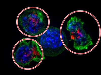 杀手T细胞(红圈示)可狙击变异细胞。有助研发万能流感疫苗。...