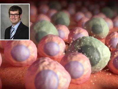 贝克(小图)指清除老鼠脑内的衰老细胞(大图绿色),能缓解它...