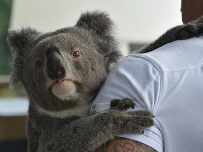 研究或有助增强树熊的免疫力。科学家在发表研究结果会上抱着树...