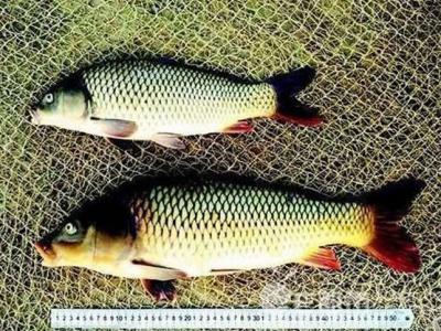 同样是8个月大的转基因「冠鲤」(下)与黄河鲤(上...