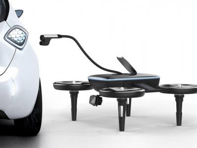 只要把充电插头口连上无人机,就可紧急为电动车充电。充电无人...