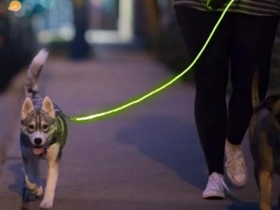 该款光纤狗带标榜安全型格,也是全球唯一整条都闪着LED灯的狗...