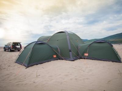 帐篷可因应需要,自由组合。该帐篷采用透气的防水尼...