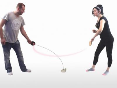 装置可以让人随意打球。装置由一个底座加上一个装在...