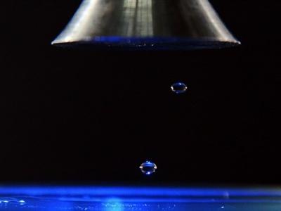 该机器能发出强大的超音速声波,令鸡尾酒一滴滴浮在空气中。 弗朗西斯(右)与德...