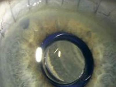 VisionCare微型望远镜植入患者眼睛后的效果 放在指尖的VisionCare可植入微型望...