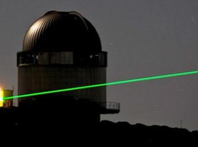 温室气体测量的场面酷似星球大战 绿色激光束形成的侧面剖面 特纳利夫岛的欧...
