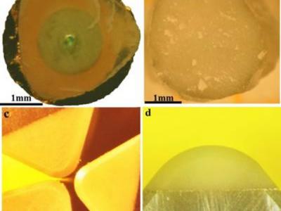 a 和b: 在20GPa/2200o C条件下合成的直径约为3毫米的合金样品,在铜屏幕显示出其...