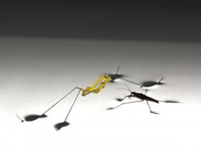 水黾与一个可在水上跳跃的机器昆虫在一起(Seoul National University) (神秘...