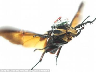 美国和新加坡的工程师在甲虫身上安装无线电发射机“背包”并利用这个背包控制甲虫...