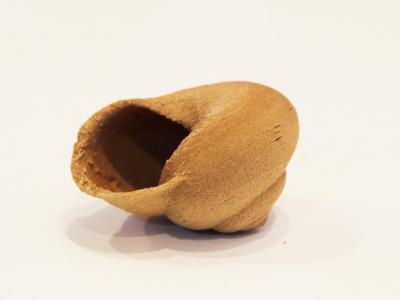 用3D列印出的木质材料寄居蟹壳。图片提供:Fablab Dynamic李柏廷。 用3D列印出...