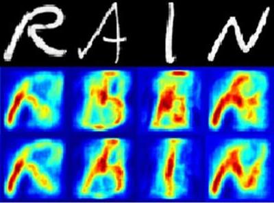 顶部是原始的视觉输入,下面是通过功能性磁共振成像数据重建的图案。 据腾讯科学...