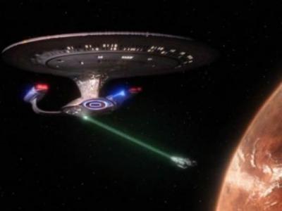 《星际迷航》里的一艘星际飞船利用牵引光束拖拽一艘更小的飞船。科学家已经公开一...