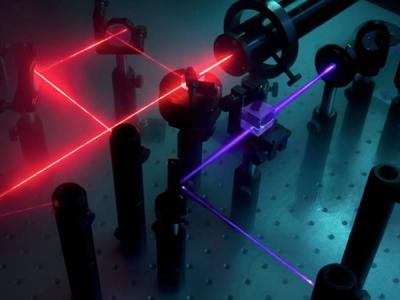 激光束拼出的量子技术实验室的标志 量子计算机依靠的是原子和其他粒子的奇特特性...