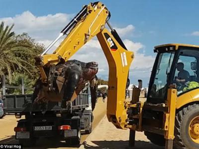西班牙巴塞罗那沙滩巨型棱皮龟搁浅(神秘的地球uux...
