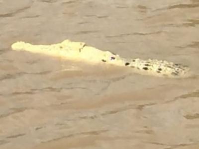 澳洲北领地达尔文河流惊现罕见的白色鳄鱼