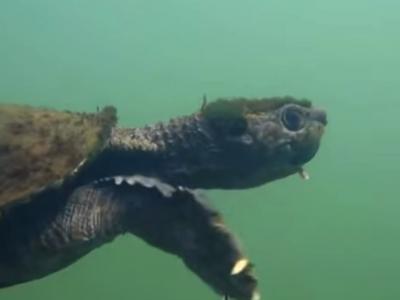 学名为Elusor macrurus的隐龟,生活的地方若不是混浊的野外水...