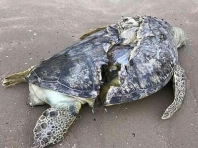 海龟死状恐怖。海龟伏尸沙滩。(神秘的地球uux.cn报...