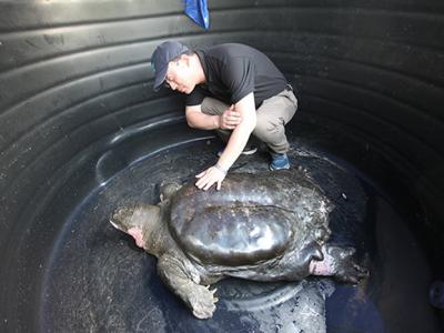 珍贵的斑鳖全球只剩下3只专家正在帮苏州动物园的母...