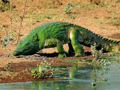 南非克鲁格国家公园惊现“绿巨人”鳄鱼