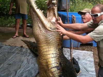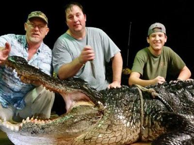 美国阿拉巴马州尤福拉湖捕获408公斤巨鳄