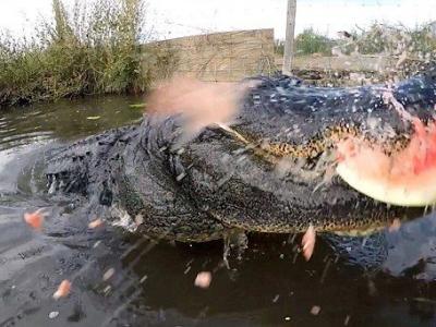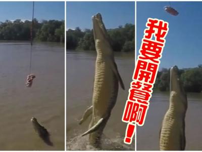 澳洲鳄鱼表演抢食 水中跃起气势凌人
