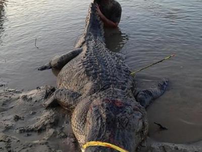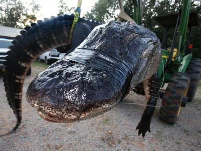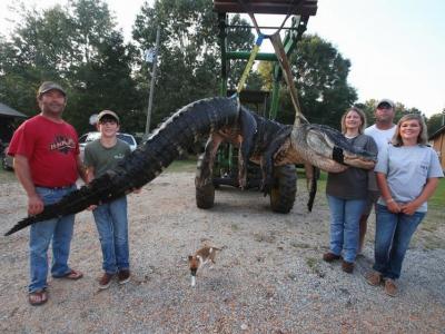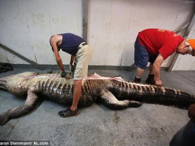 美国密西西比州捕获359公斤巨鳄 接连打破