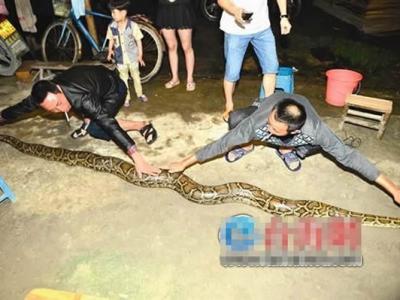徒手制服3米长大蟒蛇