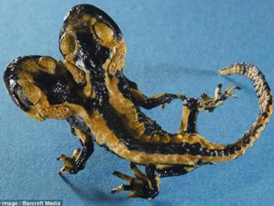 德国惊现罕见双头火蜥蜴 火蜥蜴的每个头部都有一个独立的大脑 这种双头动物...