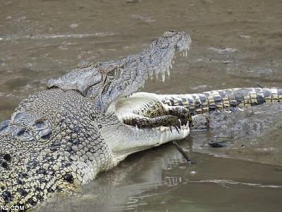 澳大利亚丹特河一条两米长的鳄鱼——“埃里克”,佯装寻觅食物却悄然接近同类,对...