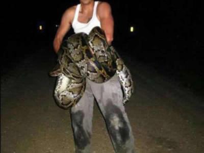 美国佛罗里达州一男子捕杀创纪录巨蟒