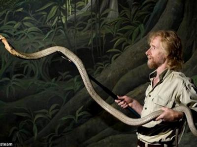 马克的腿被这条3米长的剧毒眼镜王蛇咬了一口,所幸没有生命危险 近日,著名爬行...