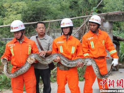 广西河池东兰县三弄村捕获5米多长大蟒蛇