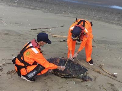 一只濒危绿蠵龟死于苗栗沙滩上。(中时电子报图片)(神秘的地球uux.cn报道)据东网...