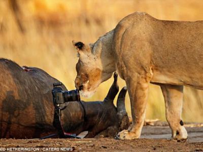 津巴布韦大草原狮子叼走摄影师相机