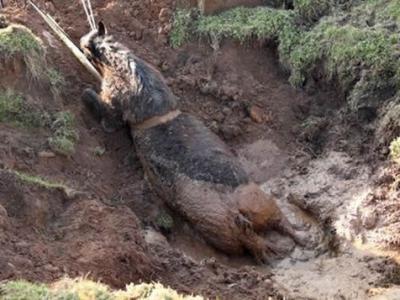 英国一只公马陷入泥潭终获救