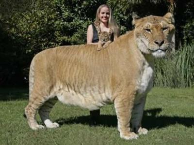 刚出生4周与8岁的两头狮虎兽在美国北卡罗里娜州一家野生动物保护中心亮相。 世...