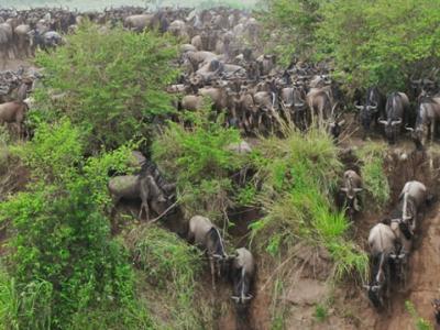 非洲百万角马越过马拉河大迁徙 每年,非洲大陆上都会出现200百多万只角马越过马...
