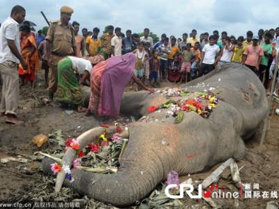 印度一头雄性野象疑遭偷猎者袭击中弹身亡