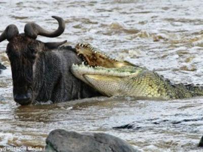 成群的羚羊在东非大草原上迁徙 一只羚羊在跨越河流时惨遭鳄鱼攻击 随着雨季的...