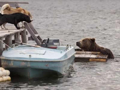 俄罗斯勘察加半岛棕熊被狗逼退 俄罗斯勘察加半岛棕熊被狗逼退 俄罗斯勘察加...