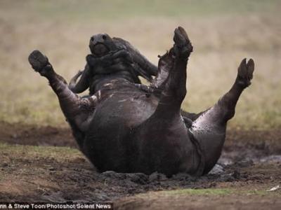 非洲水牛的“懒牛打滚”