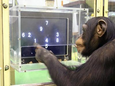 一只叫Ayumu的五岁半的猩猩通过随机排列的数字序列进行着记忆力测试 一只在迈...