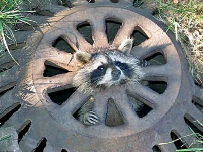 小浣熊脑袋被井盖卡住 小浣熊幸运地被救起 近日,一只小浣熊不慎将脑袋卡在井...