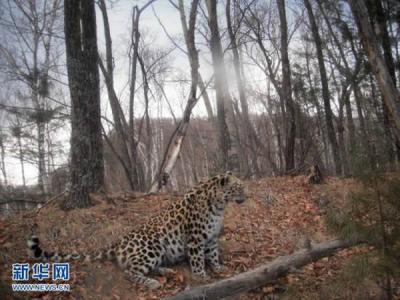 这是在吉林长白山区拍摄到的一只野生东北豹(4月4日摄)。 4月4日下午3点50分,吉...