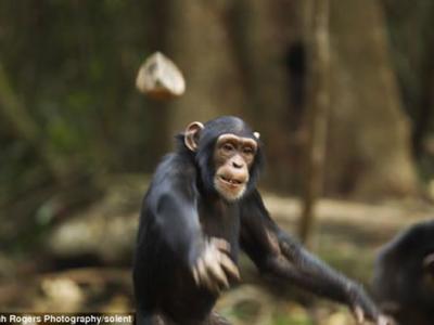 小黑猩猩乔亚向摄影师阿努普•沙阿投掷石块 猩猩母亲走过来扇了乔亚一巴...