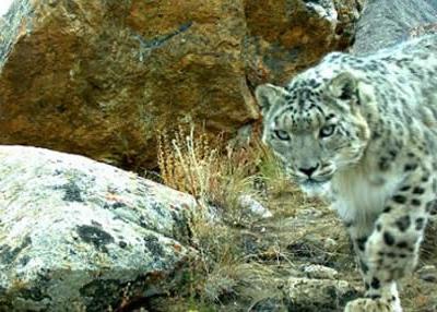 科学家共在塔吉克斯坦瓦罕山安装了11台自动照相机,其中有一台被好奇的雪豹幼仔偷...