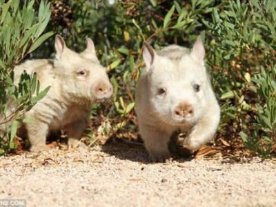 白化袋熊艾斯和波拉被发现在澳大利亚内陆的南部地区徘徊 在澳大利亚塞杜纳附近...