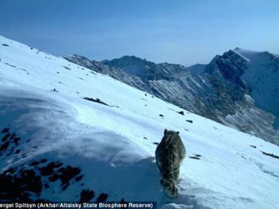西伯利亚拍摄到罕见神秘的雪豹踪迹