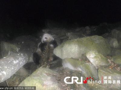 红外相机拍下四川野生大熊猫吃牛羚尸体